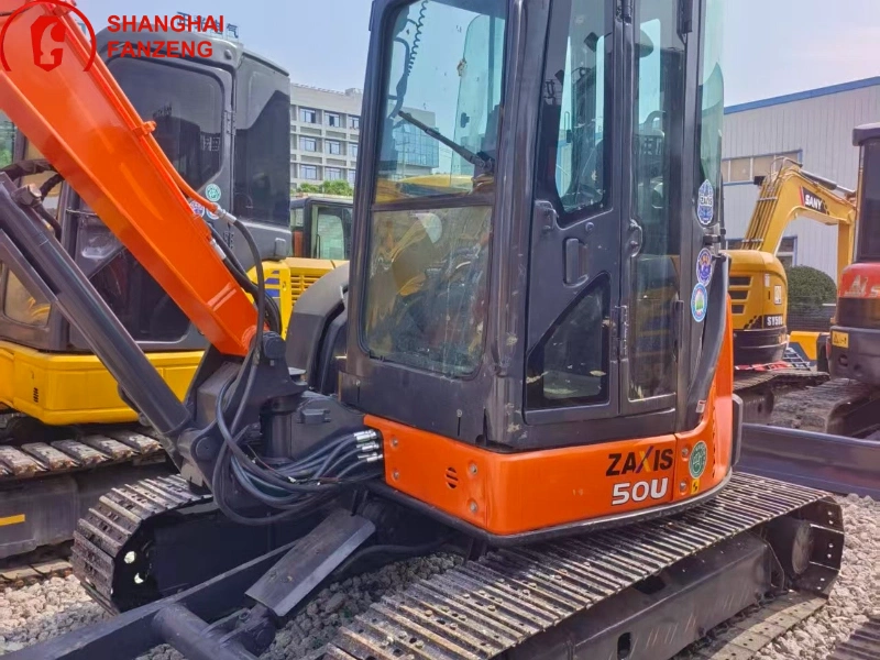 The used Hitachi 50U Excavator is a high-performance compact crawler-type hydraulic excavator specially designed for efficient and precise digging, loading, crushing and leveling operations, widely used in small construction sites, municipal engineering, garden renovation, farmland improvement, basement construction and other narrow-space operation scenarios. As a classic small excavator model of Hitachi, a world-renowned Japanese construction machinery brand, it integrates Hitachi’s advanced excavator technology and mature manufacturing experience, renowned for its compact size, flexible operation, crawler-type stable operation, advanced hydraulic control system, fuel-saving performance, high durability and easy operation—winning wide recognition in the global engineering machinery market, especially in the fields of small-scale construction and municipal maintenance. Key performance parameters: operating weight of about 4800kg , equipped with the original Isuzu 4LE2 water-cooled 4-cylinder diesel engine with a rated power of 30.5kW, maximum digging depth of 3200mm, maximum digging height of 5800mm, maximum dumping height of 4100mm, bucket capacity of 0.18m³, fuel tank capacity of 80L, and overall dimensions of 4520×1850×2580mm. It adopts a high-strength crawler-type chassis design with stable operation, equipped with wear-resistant crawler belts, which can stably travel and operate on uneven construction sites, with strong ground adaptability, no slipping, and high operation stability, effectively ensuring digging precision in narrow and complex operation scenarios. Equipped with Hitachi’s exclusive advanced hydraulic control system and precise operation handle, the operation is sensitive and smooth, the digging precision is high, the core hydraulic components are original Hitachi accessories, free from jamming or leakage, and the operation intensity is low, suitable for long-term continuous operation. The original Isuzu 4LE2 engine complies with Tier 3 emission regulations, with mature technology, low fuel consumption, low noise and strong reliability, which can stably output power for long-term continuous light and medium-duty digging operations. The bucket is made of high-strength wear-resistant steel, with strong wear resistance and impact resistance, and can be flexibly matched with different types of buckets according to operation needs, expanding the operation range.